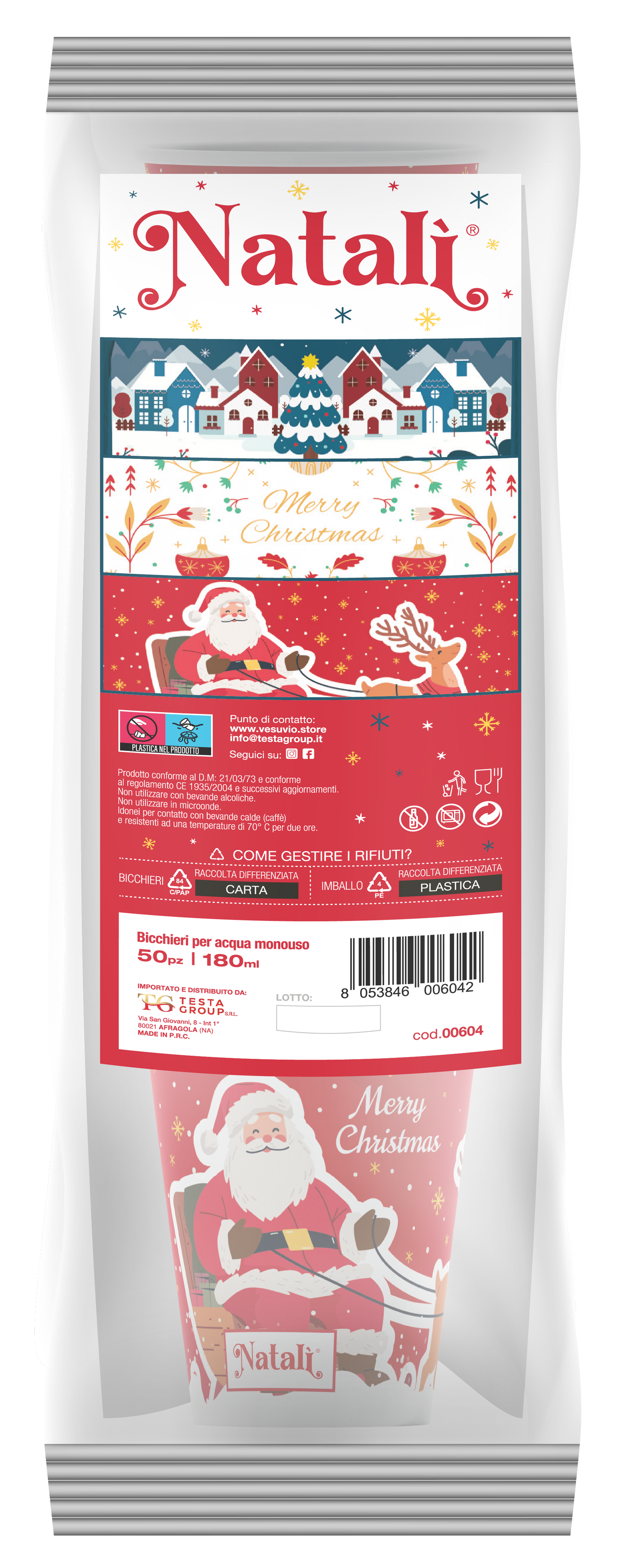 Festosi, pratici e perfetti per la tavola delle feste! I bicchieri monouso Natalì® con design Babbo Natale portano un tocco di allegria natalizia in ogni occasione. Resistenti e colorati, ideali per servire acqua con stile durante pranzi, cene e party a tema.