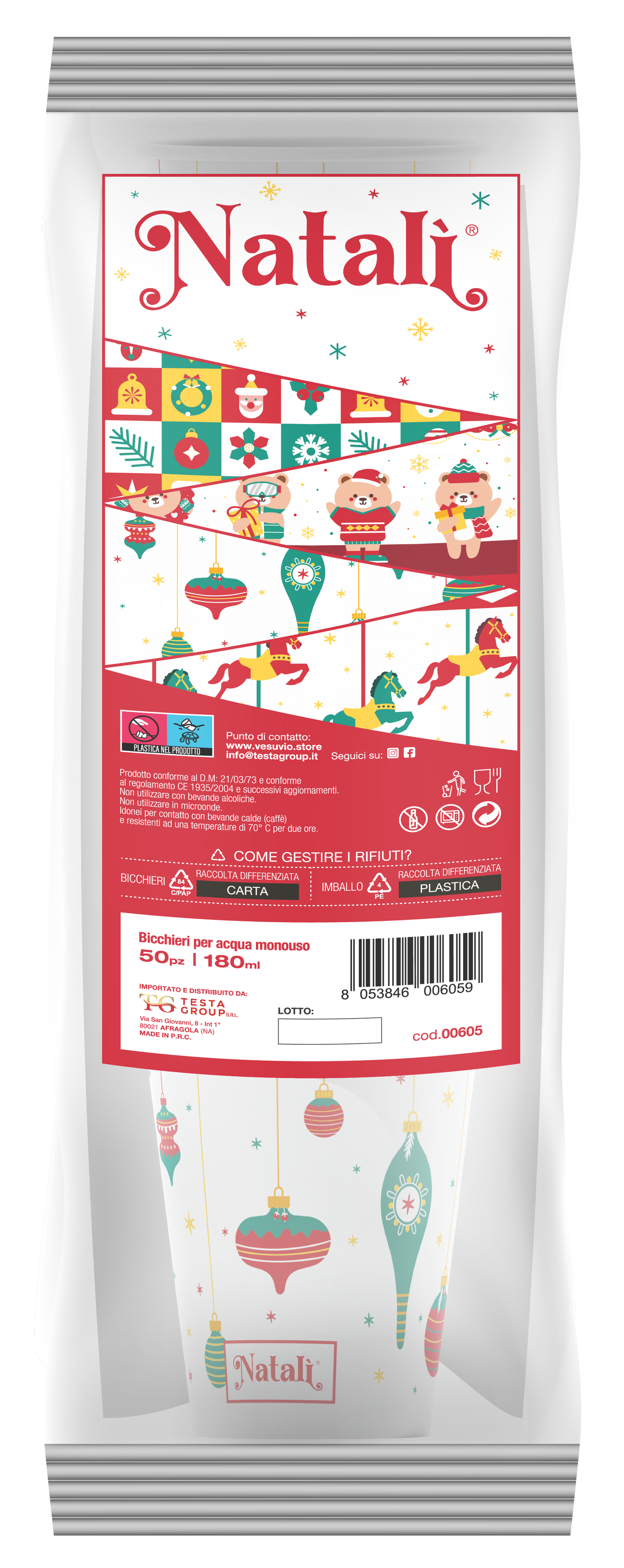 VESUVIO - Natalì Bicchieri monouso per acqua Decorazioni Natalizie 50 pz