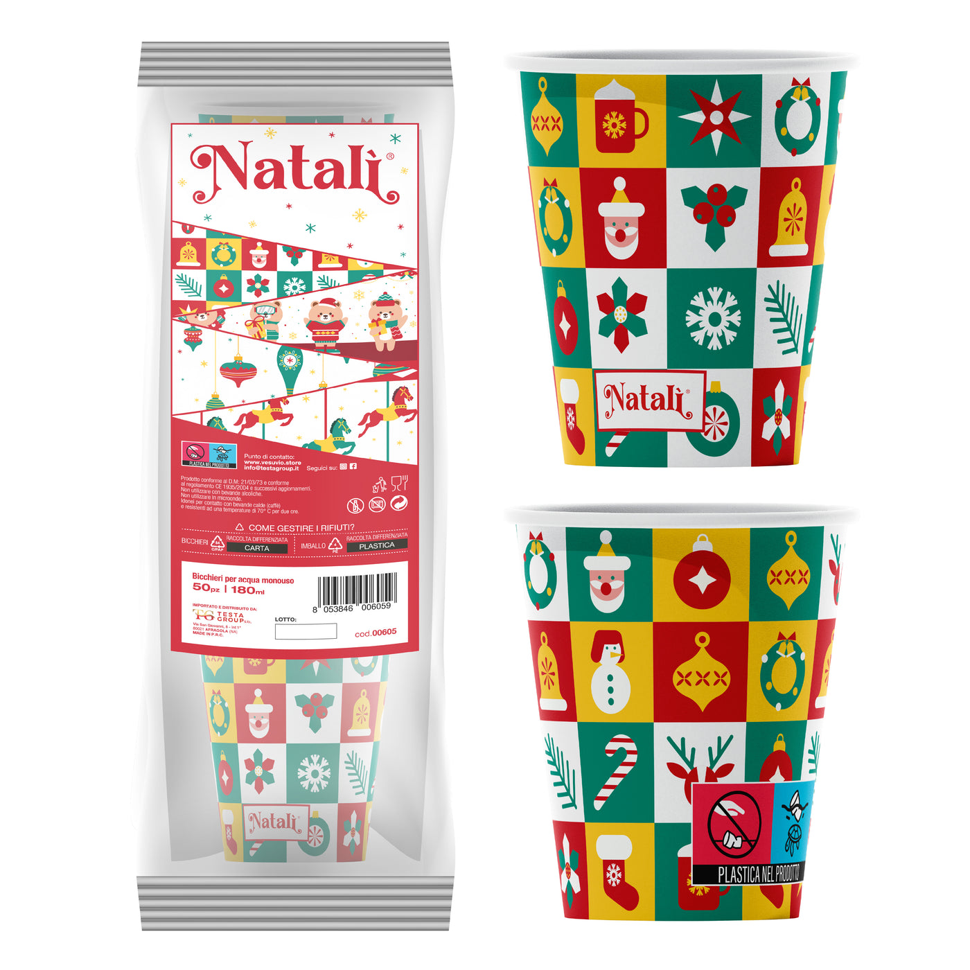 VESUVIO - Natalì Bicchieri monouso per acqua Mosaico Natalizio 50 pz
